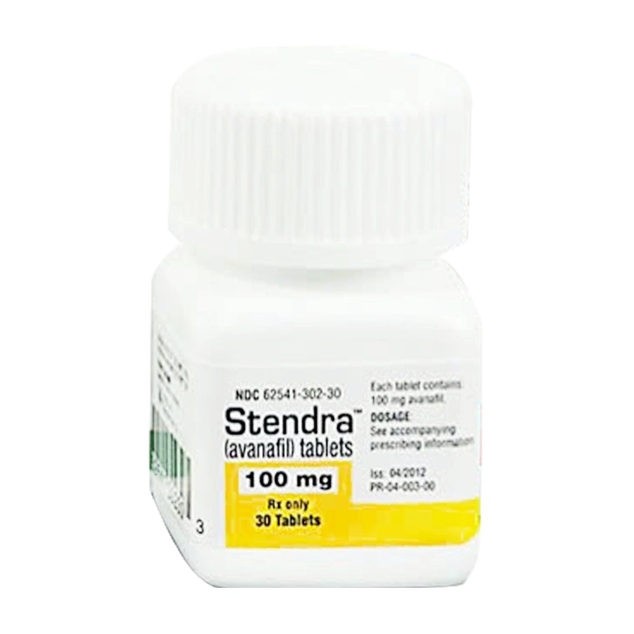 Stendra contains Avanafil 100mg, a modern and fast-acting prescription medication specifically designed to treat erectile dysfunction in men. Known as one of the fastest-working ED medications available, Stendra can be effective in as little as 15-30 minutes, making it ideal for spontaneous intimate moments. The active ingredient Avanafil helps increase blood flow to achieve and maintain firm erections during sexual activity. This bottle contains 30 tablets for ongoing treatment. Stendra offers a favorable side effect profile compared to older ED medications and can be taken with or without food. The rapid onset and reliable effectiveness make it a preferred choice for men seeking both convenience and performance. Each 100mg tablet provides the optimal balance of efficacy and tolerability for most men.